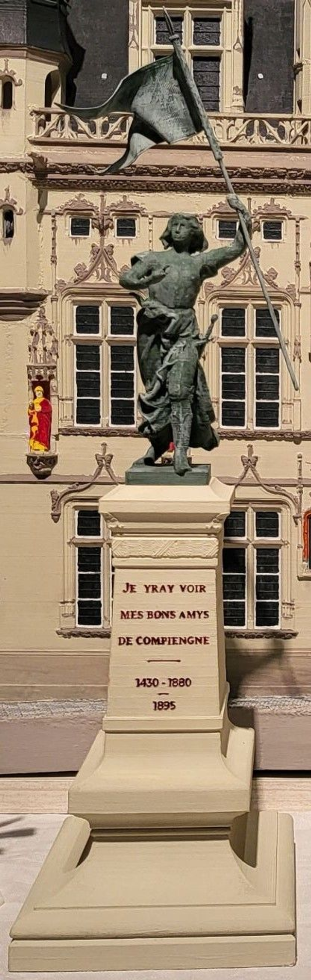 Figurine en PLA peinte à la main de la statue de Jeanne d'Arc sur la place de l'Hôtel de ville de Compiègne.
